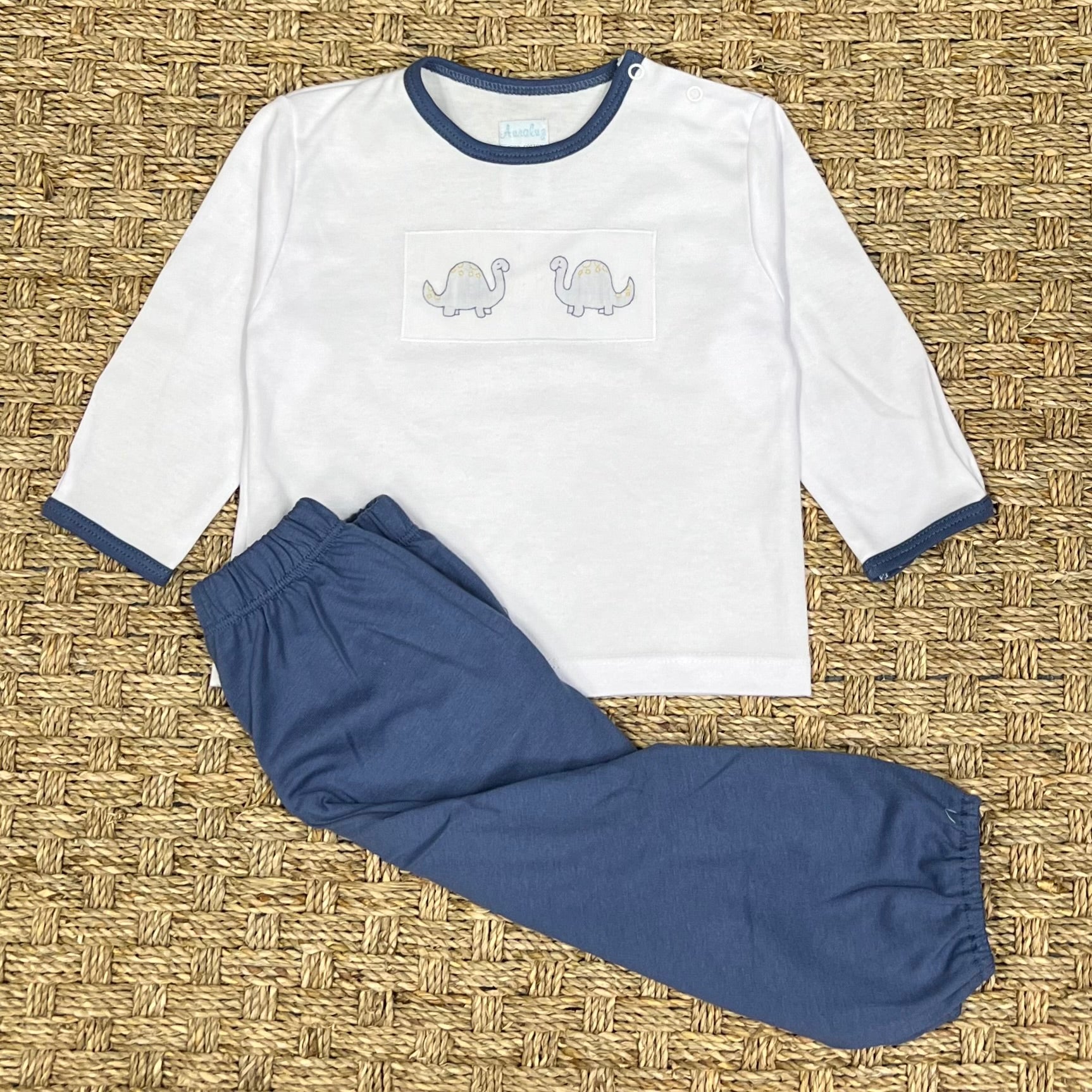 Auraluz Slate Pant Set with Dinosaur Embroidery