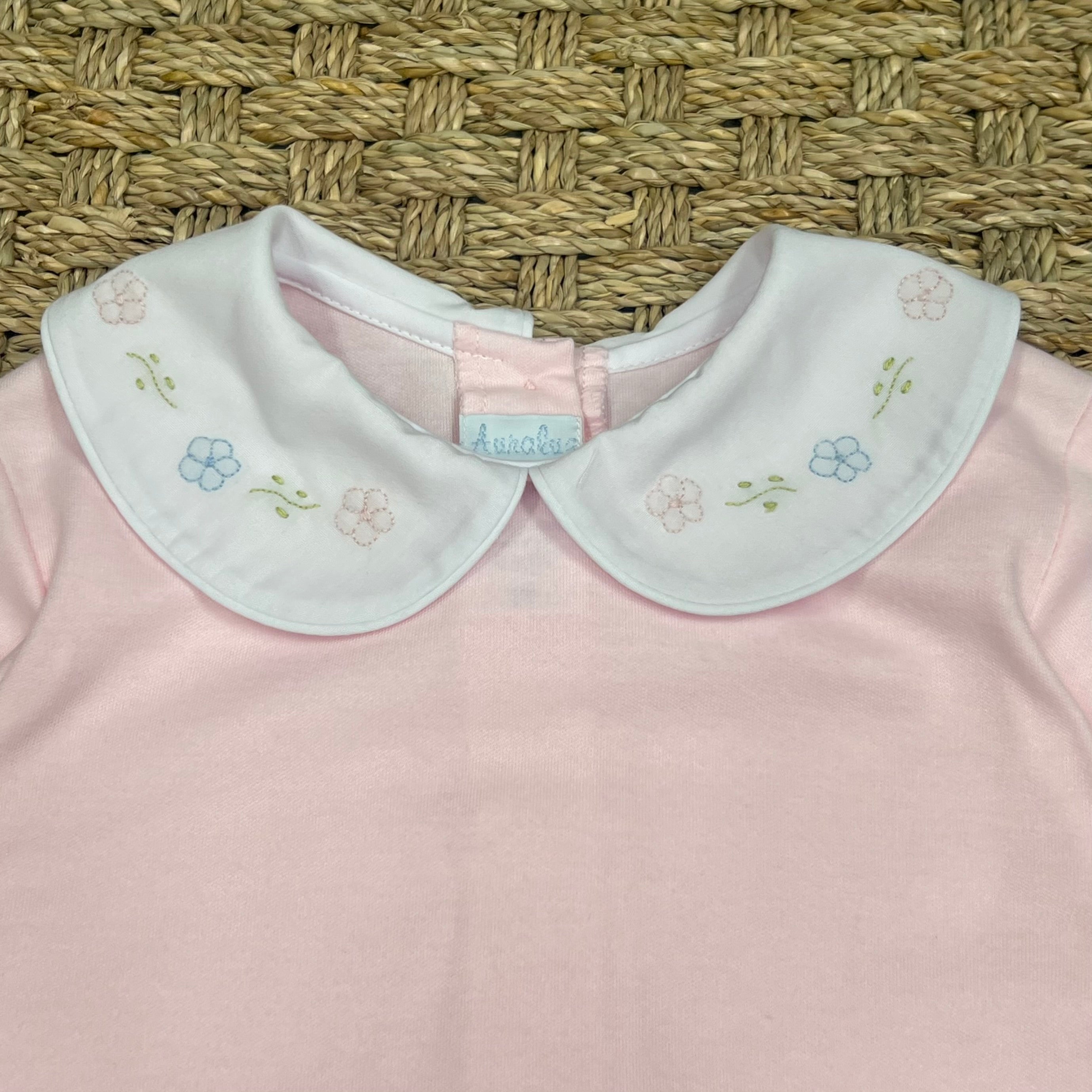 Auraluz Pink Pique Longall with Tulip Embroidery