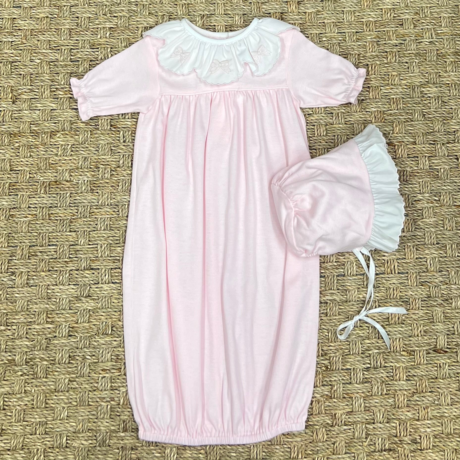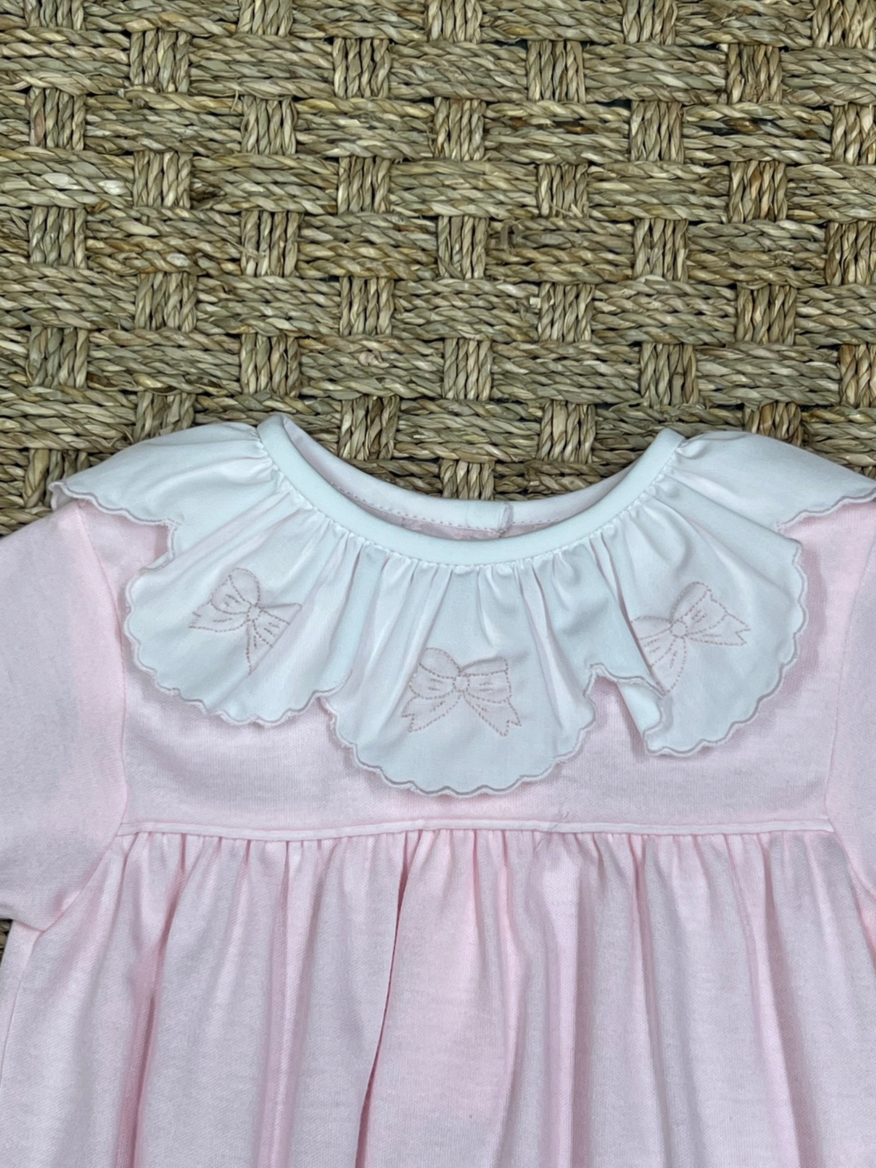 Auraluz Pink Knit Sacque with Duck Bow Embroidery