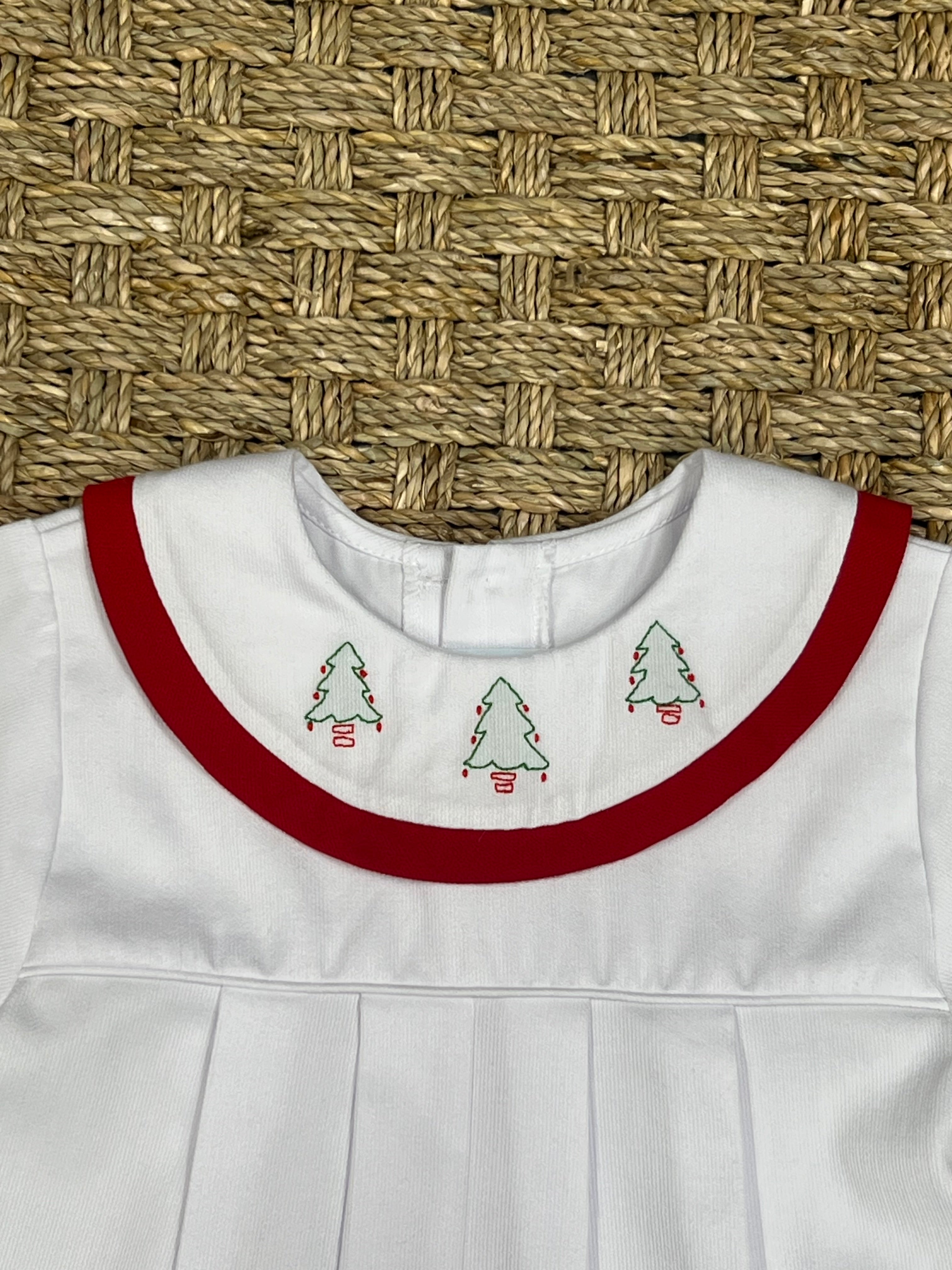 Auraluz Red Check Pant Set with Christmas Tree Embroidery