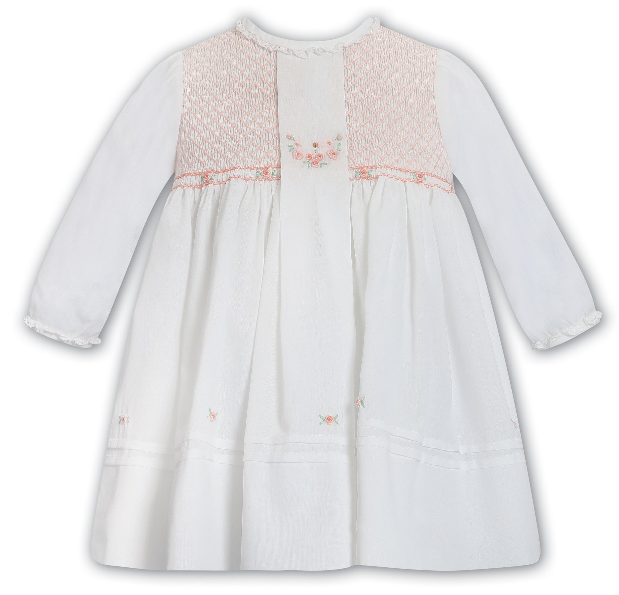 Sarah Louise Ivory Smocked Dress with Floral Embroidery