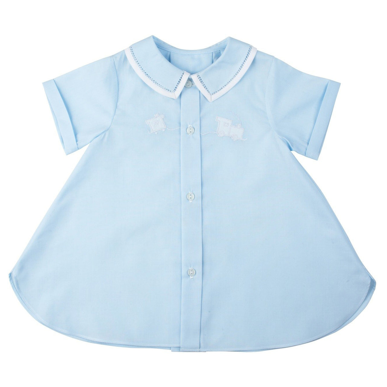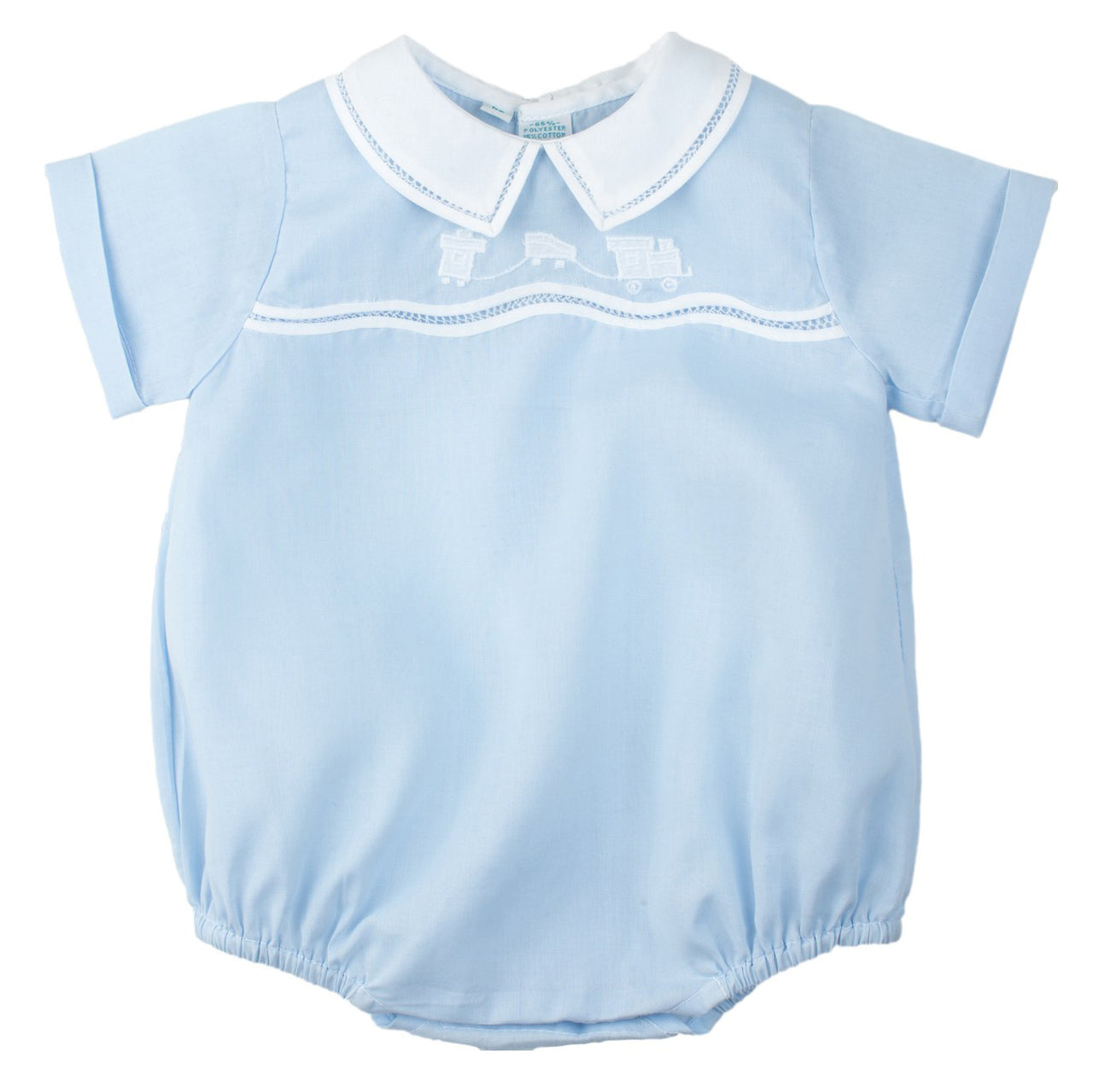 Petit Ami Shadow Stitch Blue Train Diaper Set