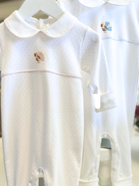 Tecomoabesos Diamond Pima Footie, White with Light Blue