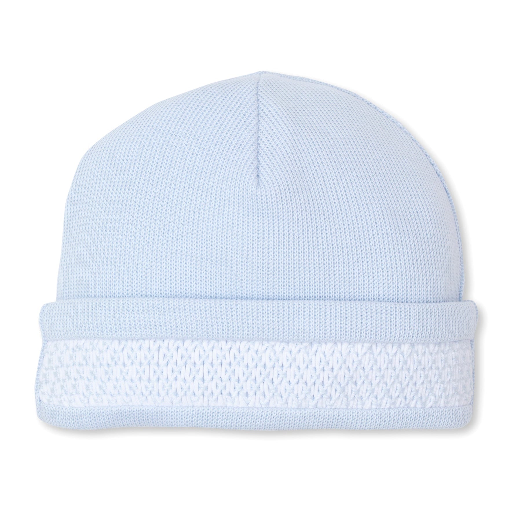 Auraluz Blue Knit Bonnet with White Picot Trim