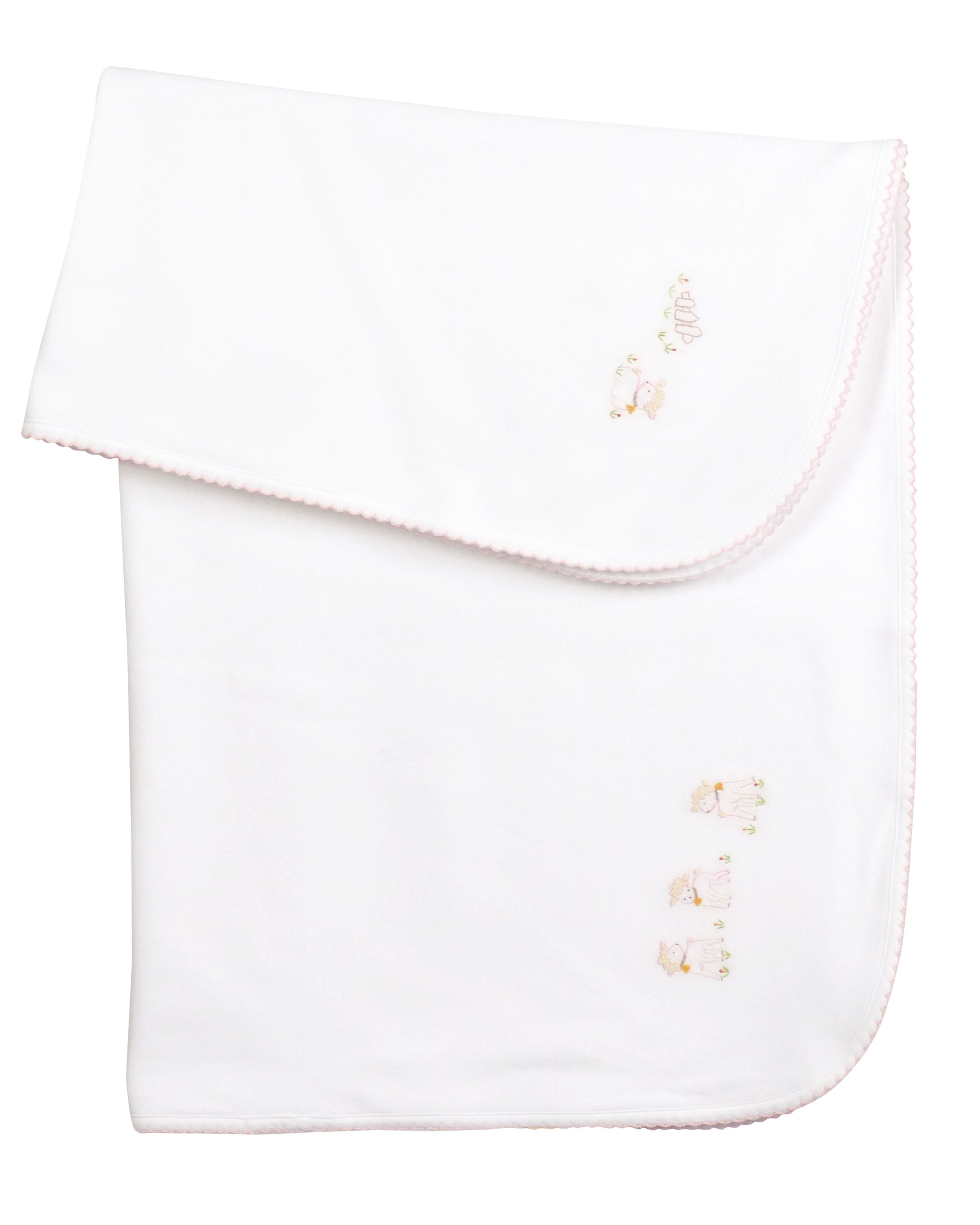 Tecomoabesos Smocked Blanket, White with Light Blue