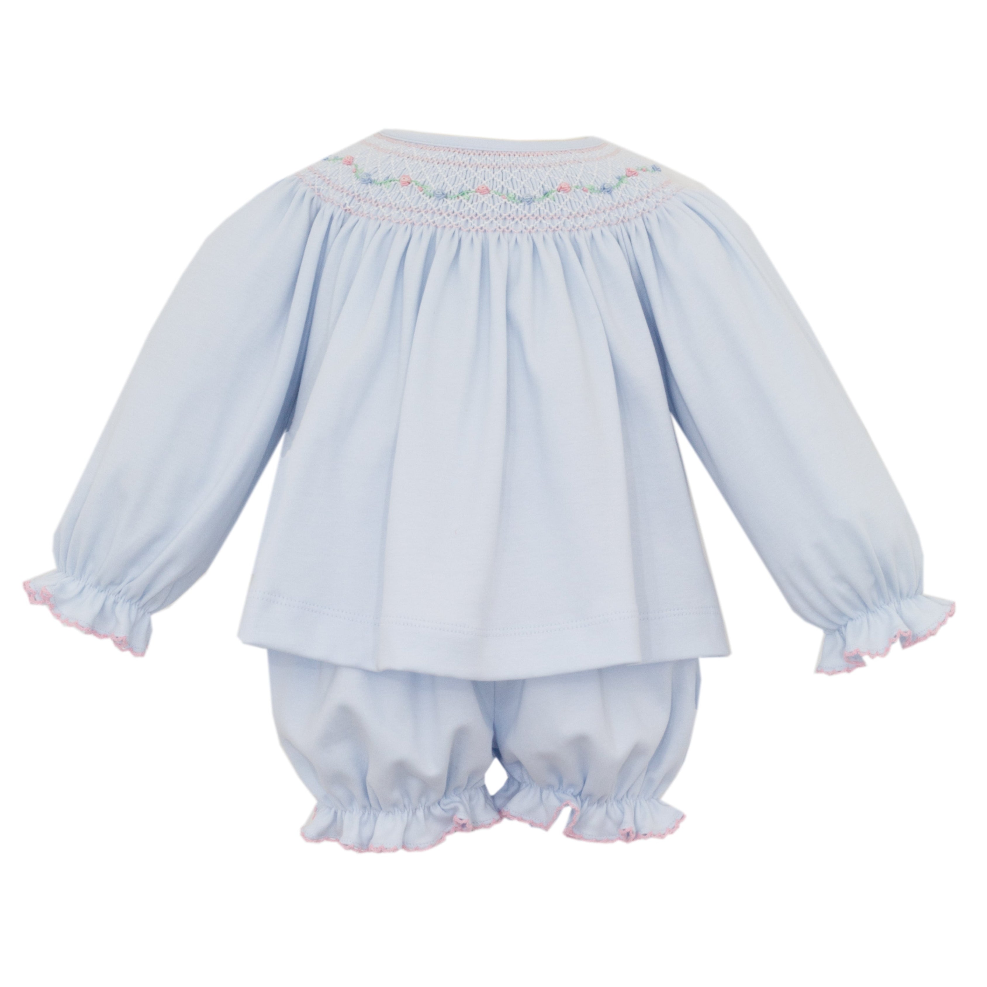 Petit Ami Mint Rosebud Smocked Bishop Dress with Bloomer