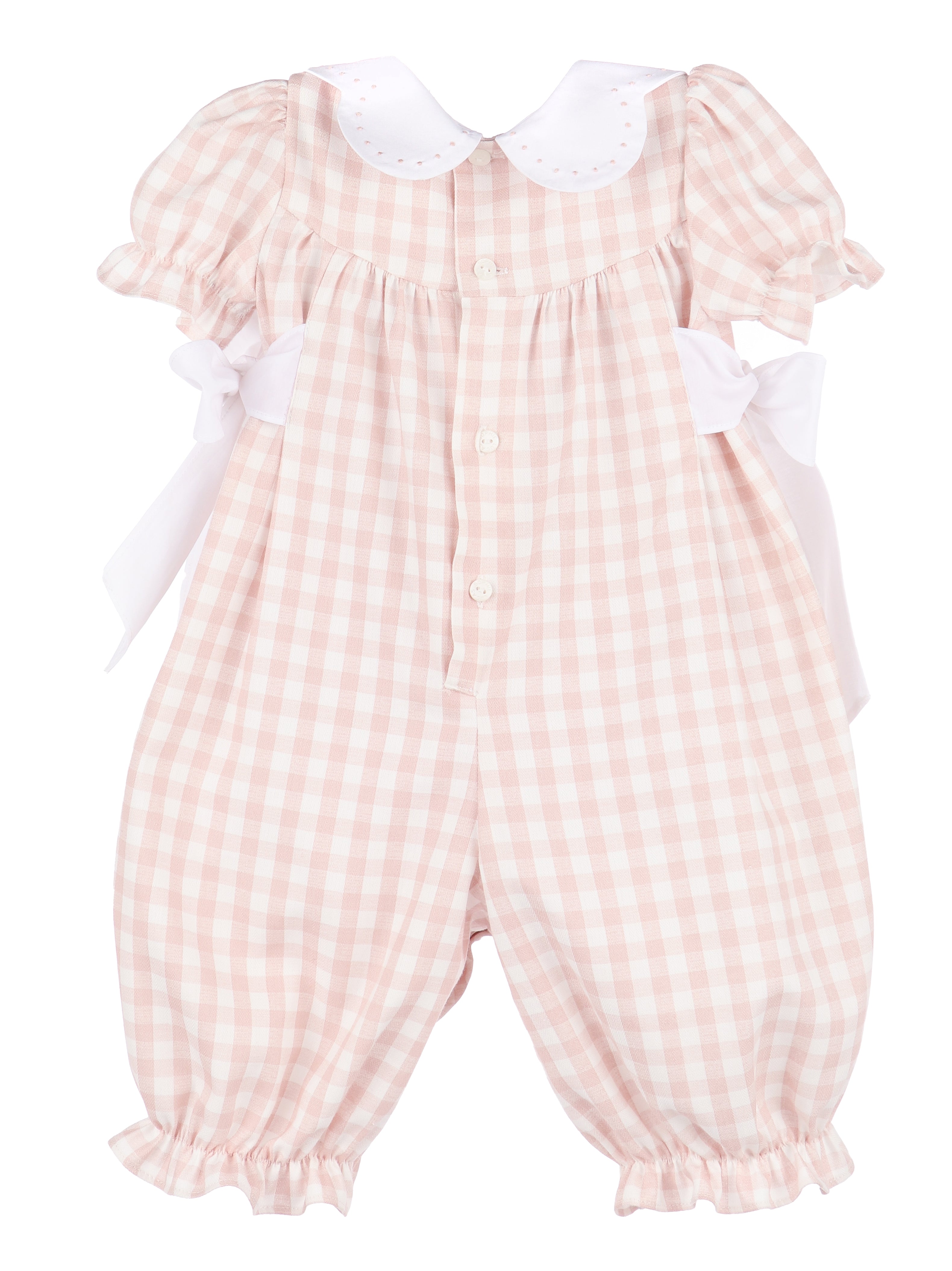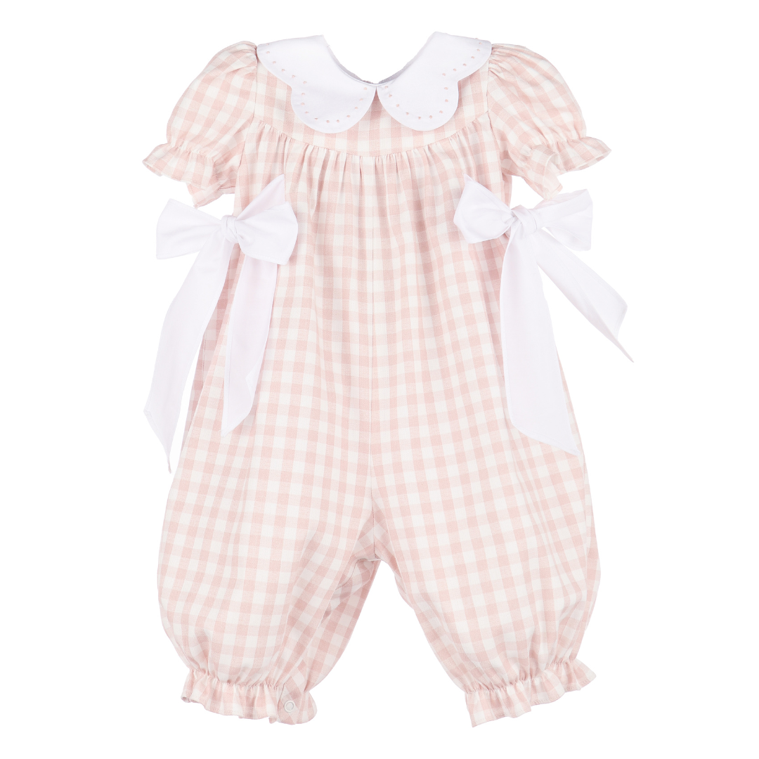 Tecomoabesos Hand Smocked Playsuit, White with Pink