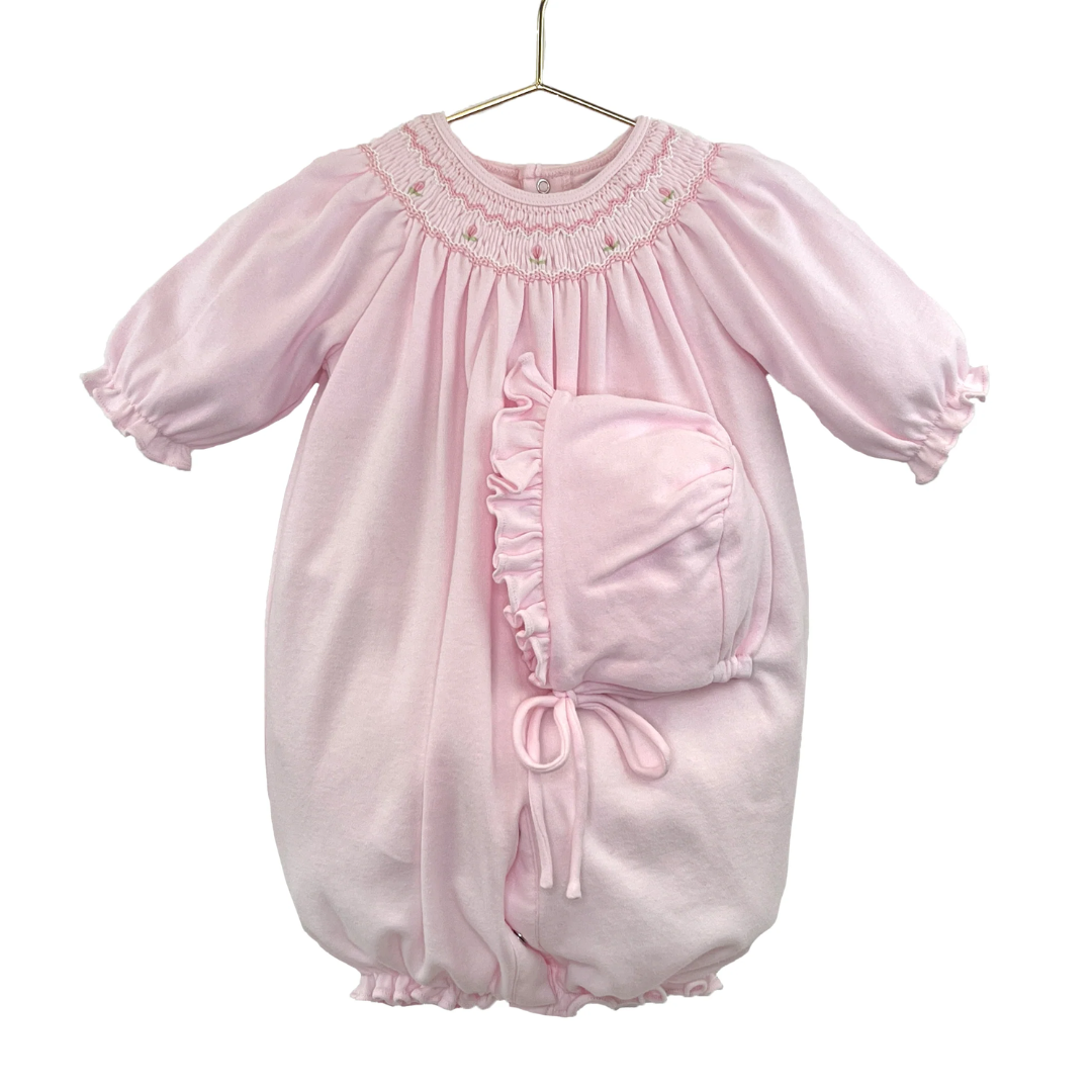 Kissy Kissy Sack with CLB Heart Smocking, Pink