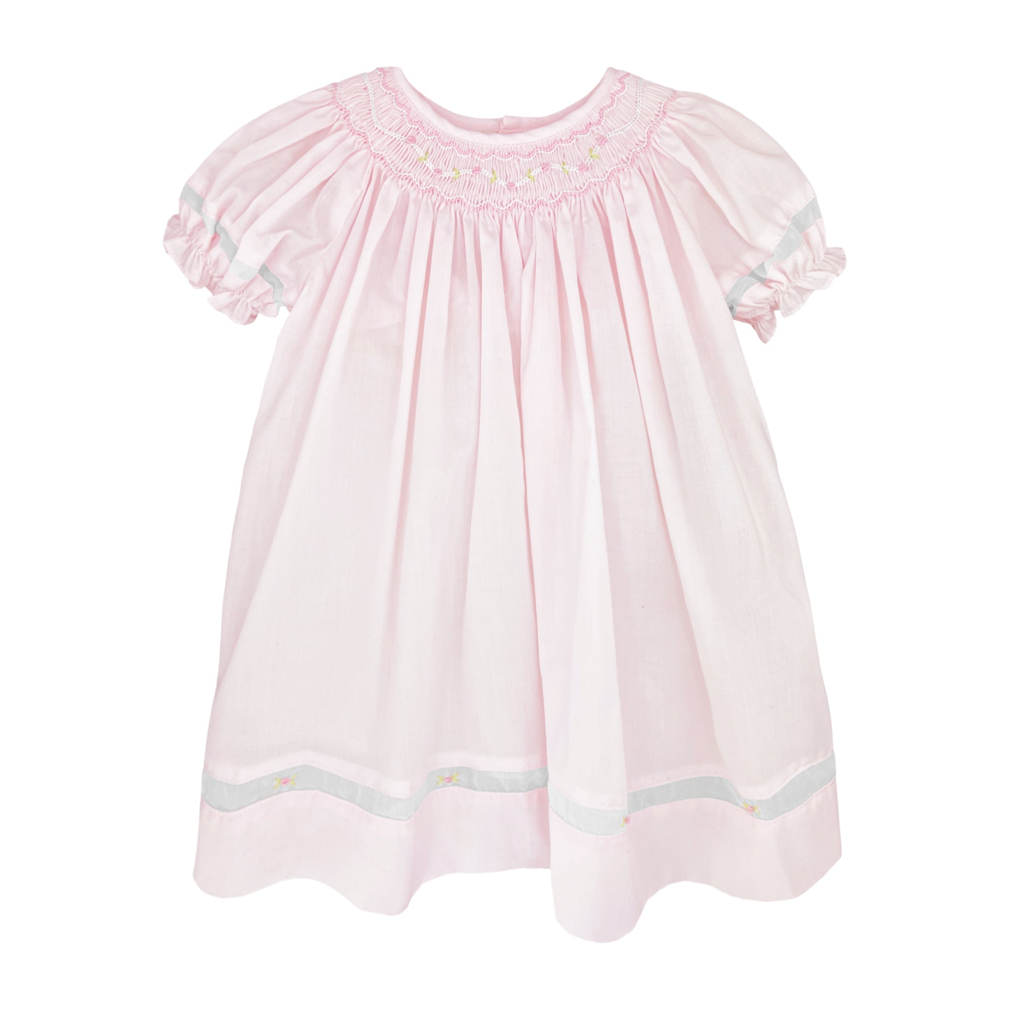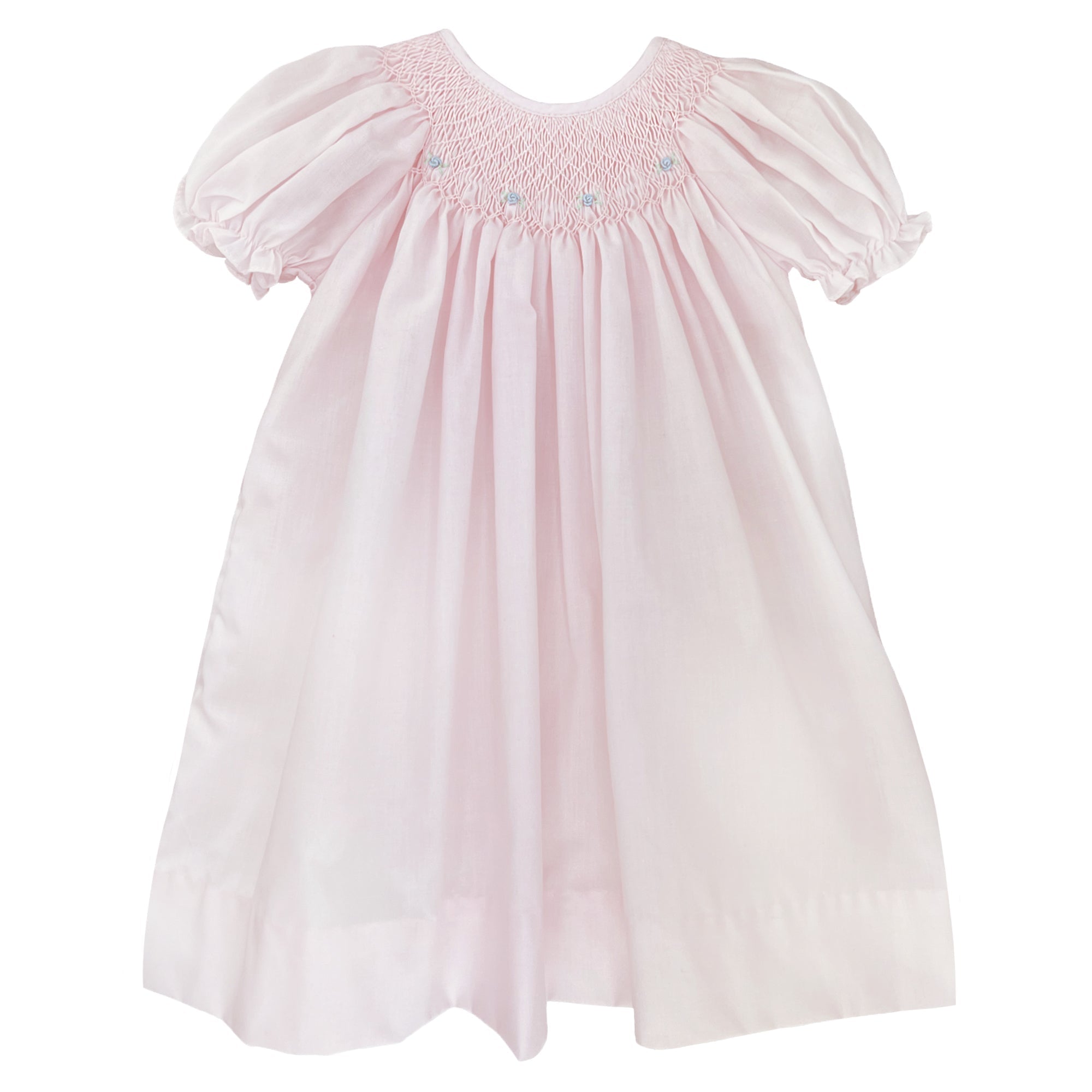 Auraluz White Pique Day Gown with Pink Row of Lamb Embroidery