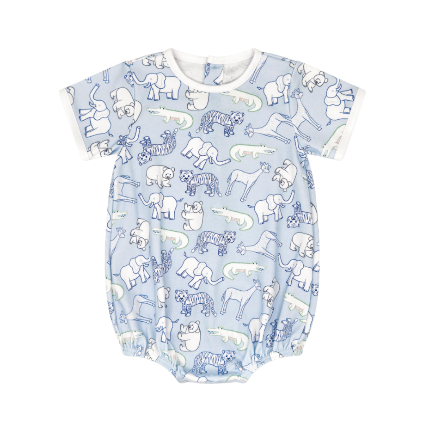 Auraluz Blue Boysuit with Blue Giraffe Embroidery