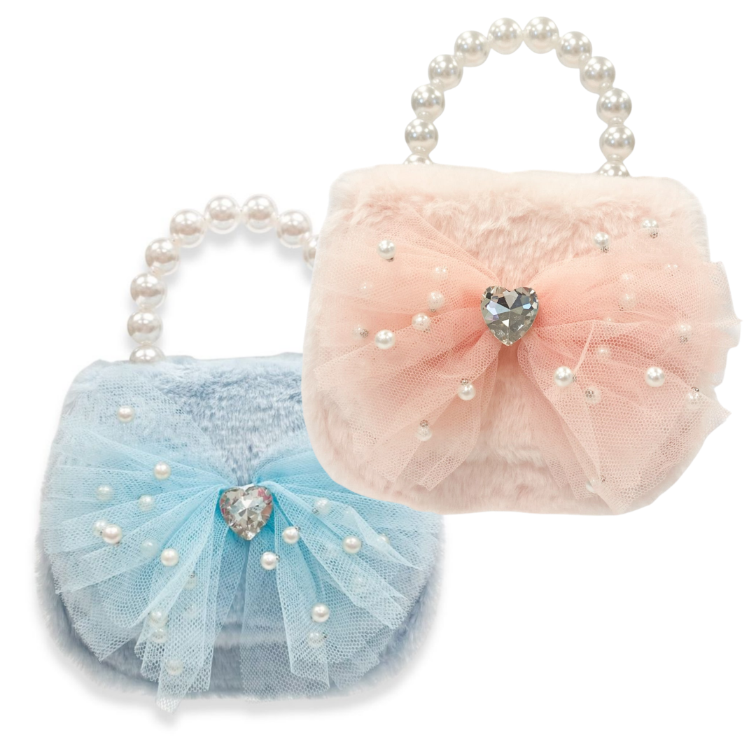 Doe A Dear Furry Purse with Bow & Pearl Charm