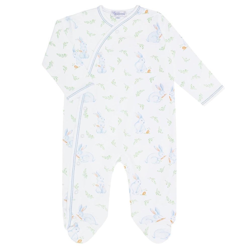 Auraluz White Gown with Sitting Bunny Pocket & Blue Checked Trim