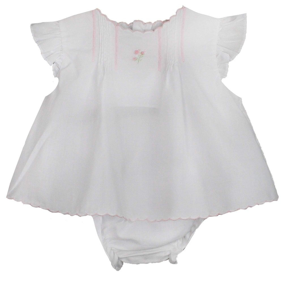 Petit Ami White Diaper Set with Pink Flower Embroidery