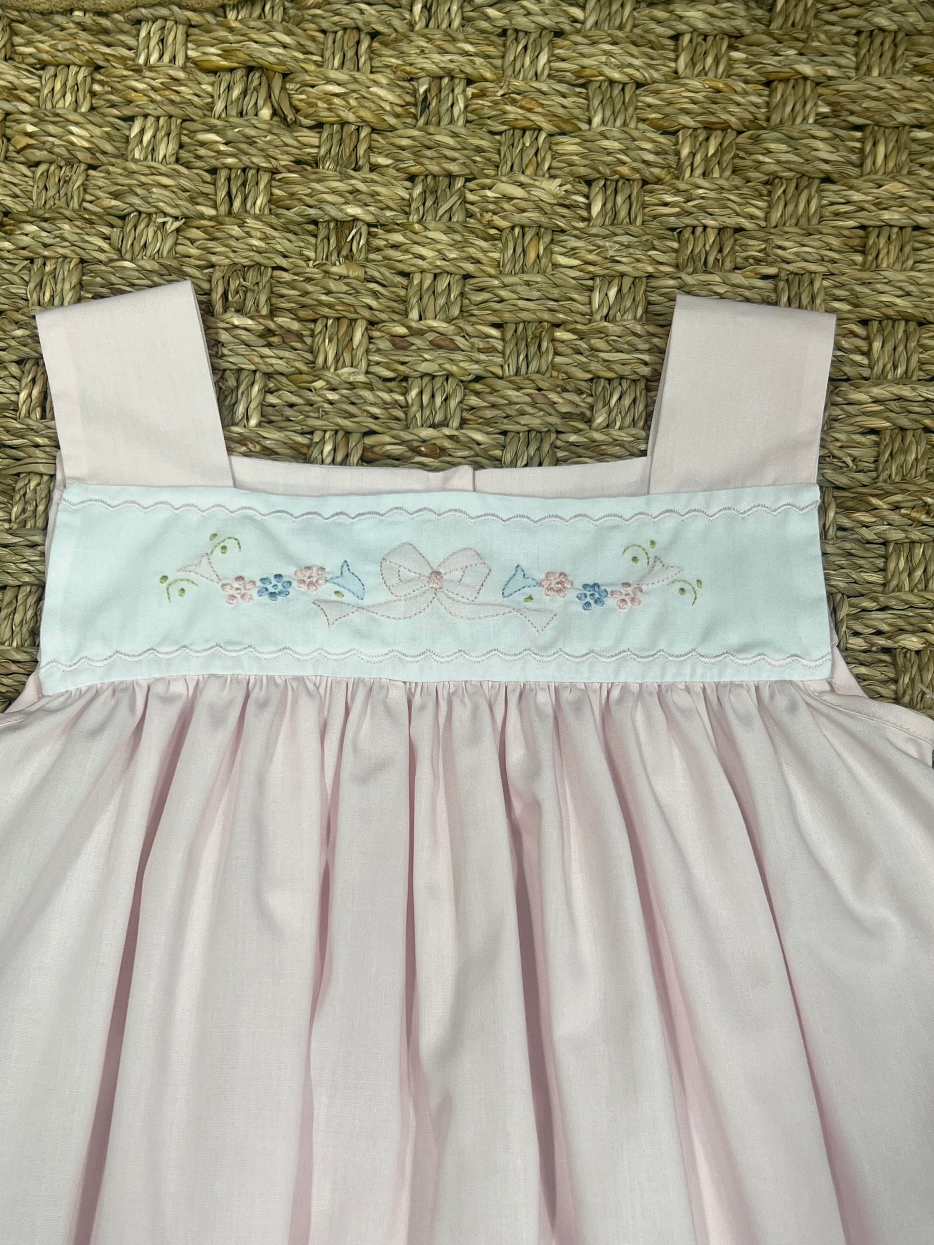Petit Ami Mint Rosebud Smocked Bishop Dress with Bloomer
