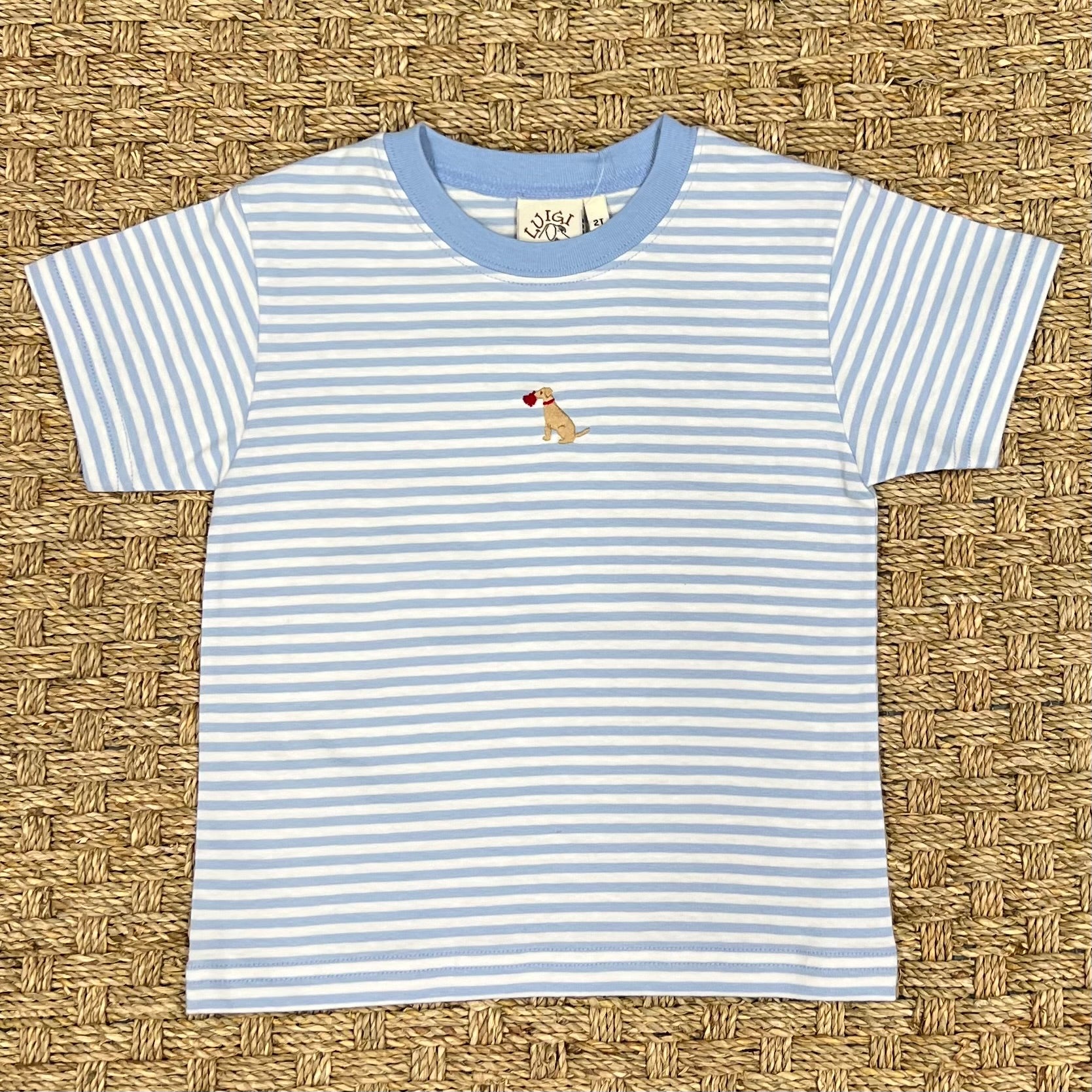 Luigi Tee, Lab Puppies on Sky Blue Stripe