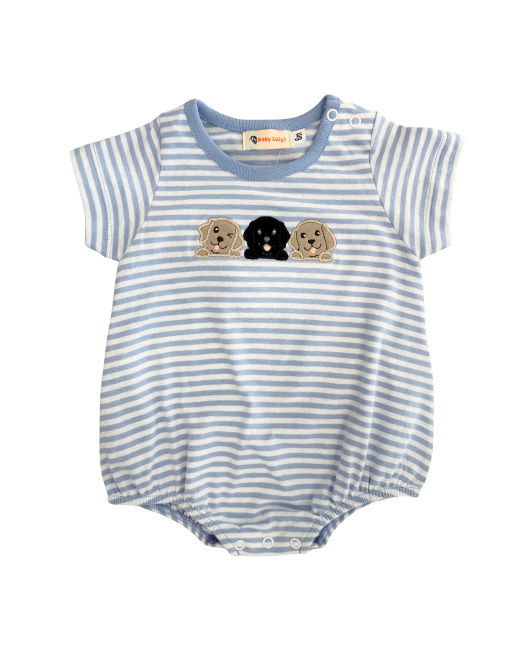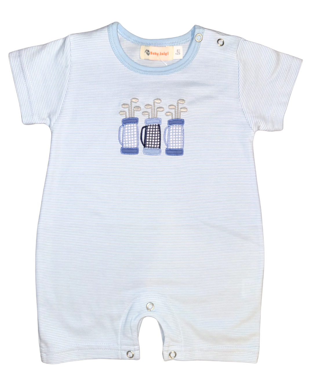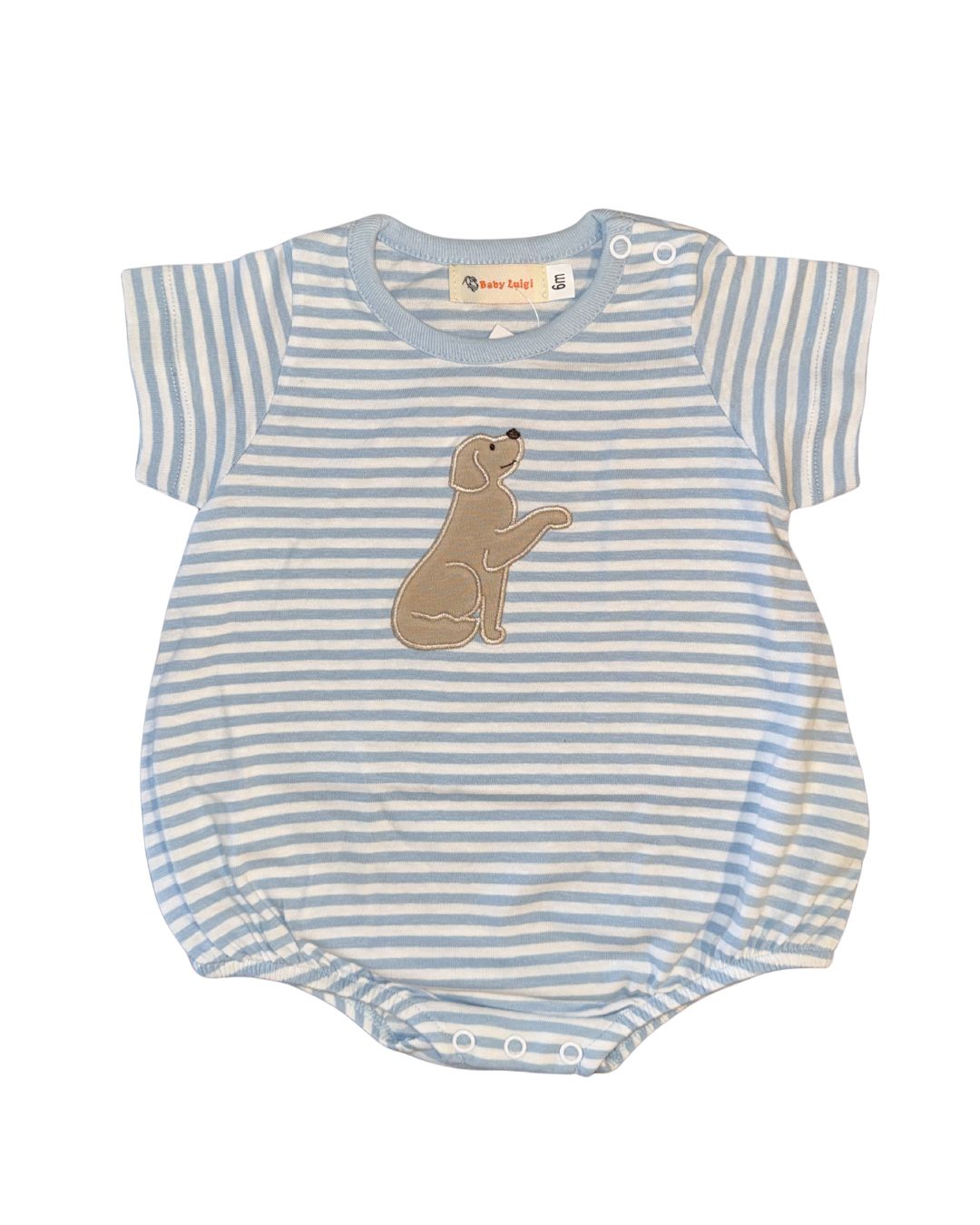 Luigi Romper Lab with Heart on Light Blue Stripe