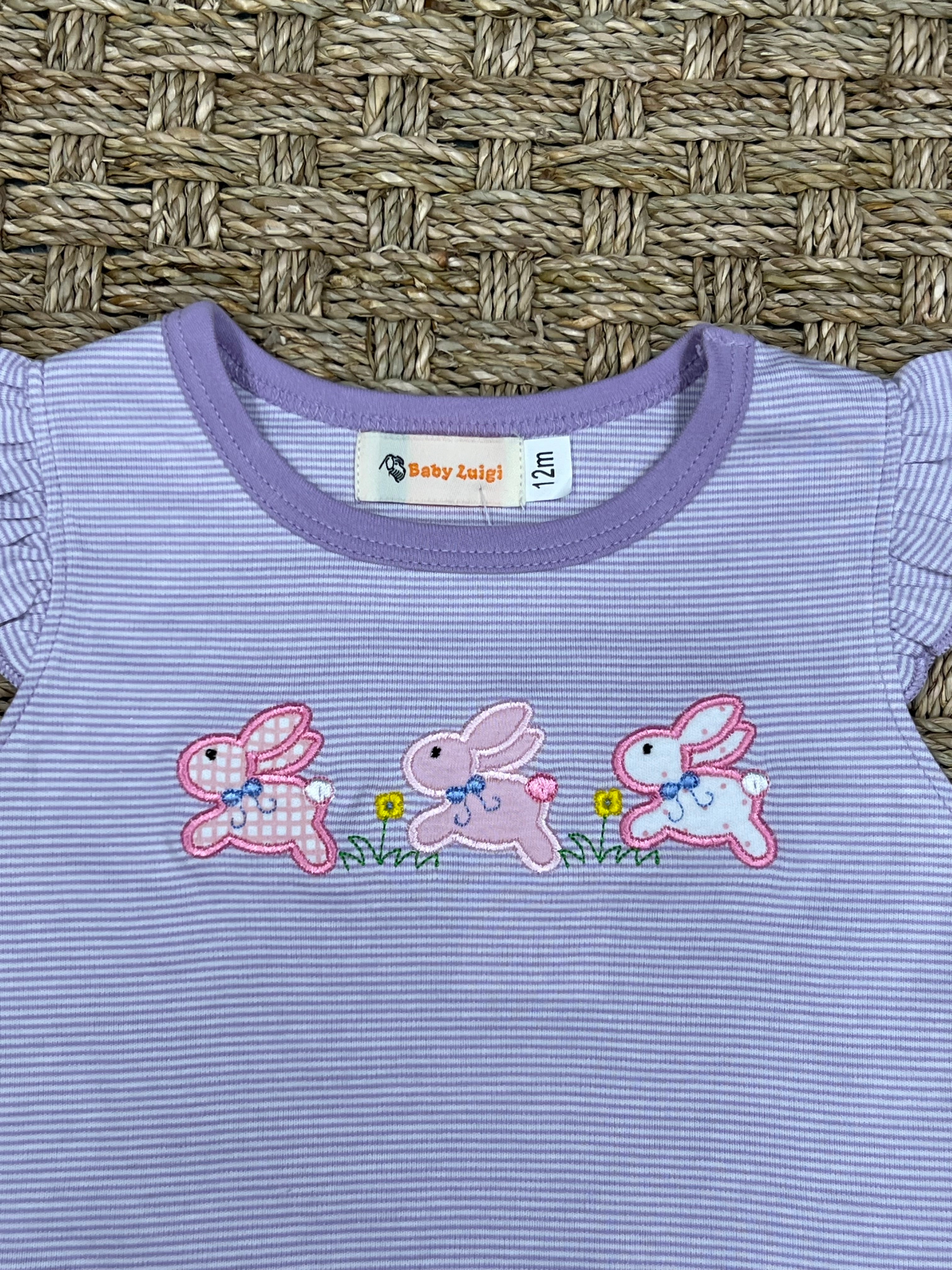 Luigi Flutter Sleeve Top, Three Bunnies on Lavender