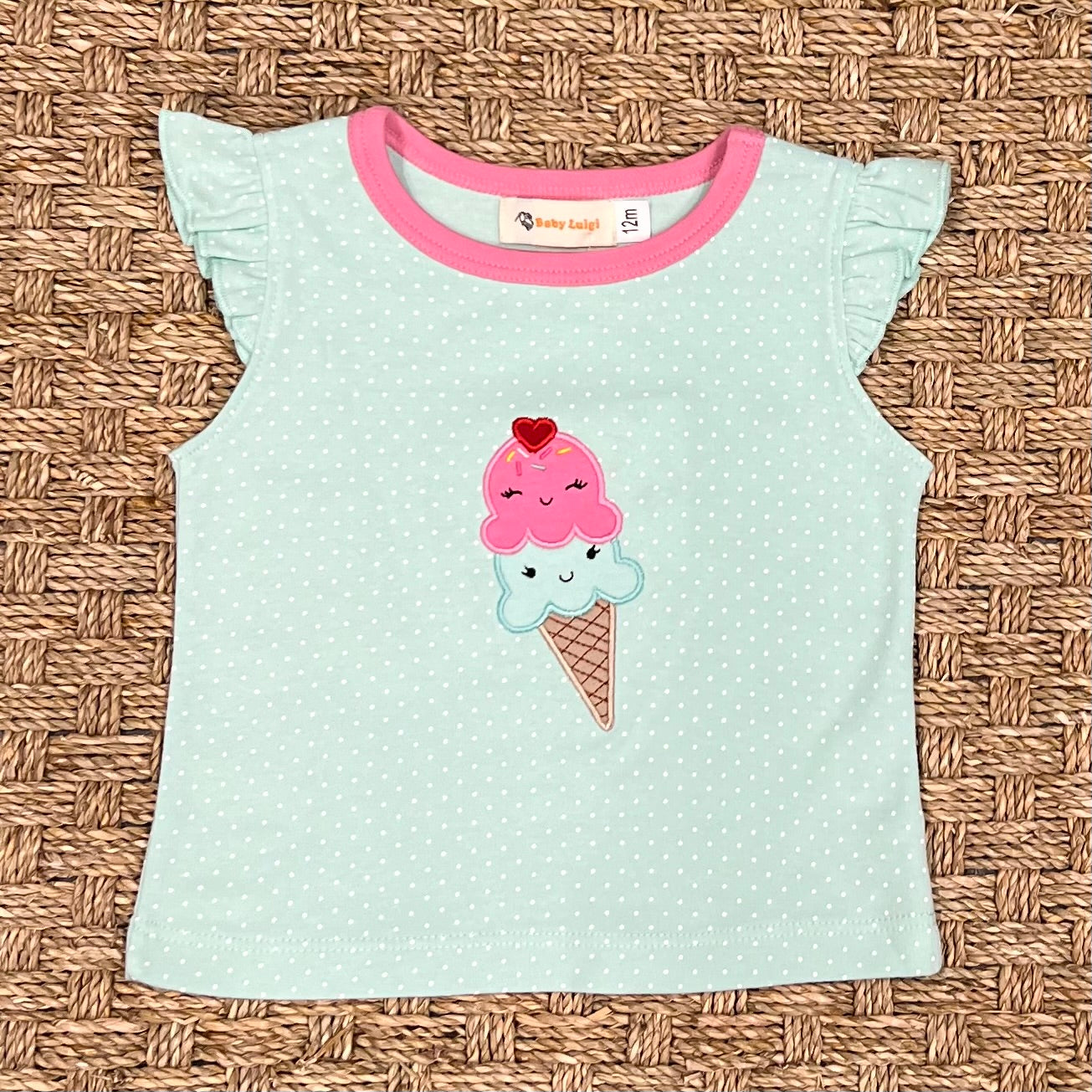 Luigi Flutter Sleeve Top, Ice Cream on Seafoam with Light Bubblegum
