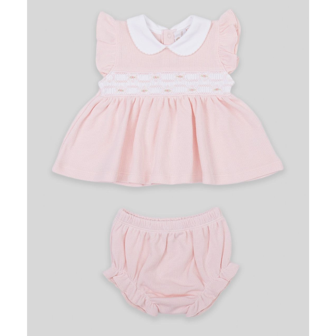 Miocotton Special Knit Hand Smocked Emma Mini Dress Set, Pink