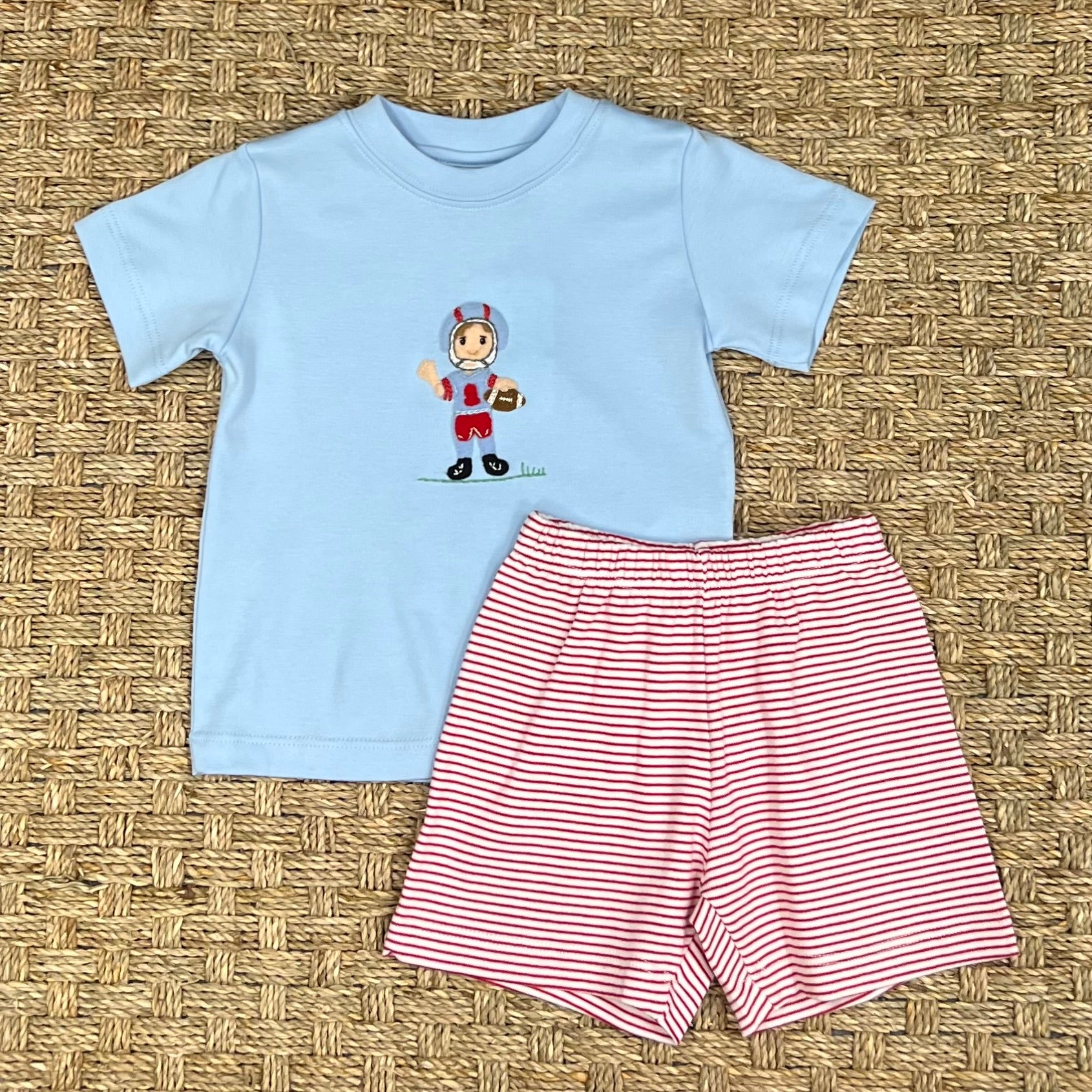 Southern Saturday Smocked Boy Short Set, Maroon/White