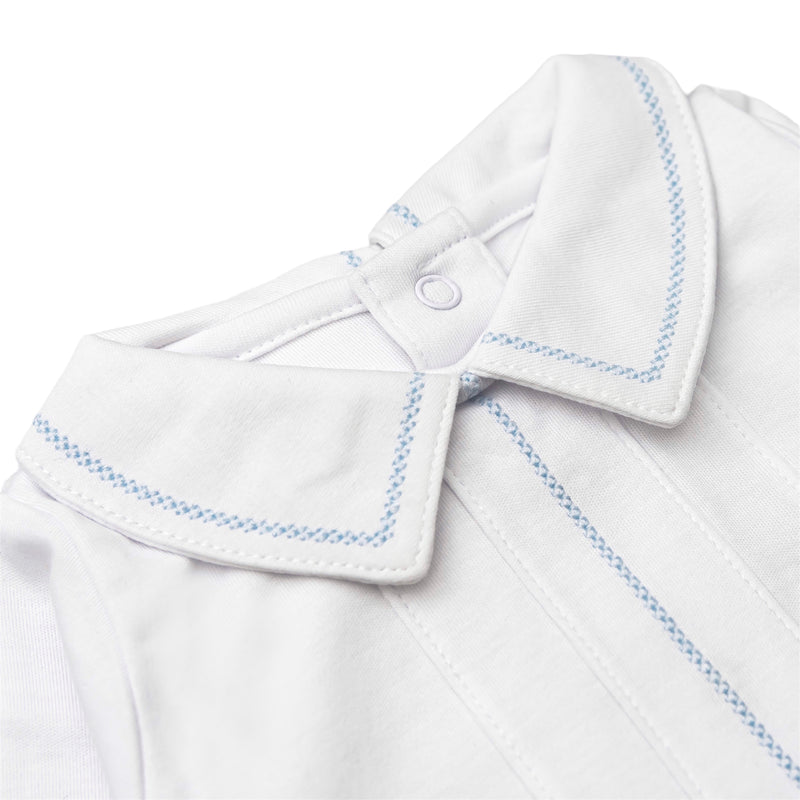 Tecomoabesos Bebe Collar Bodysuit, White with Light Blue