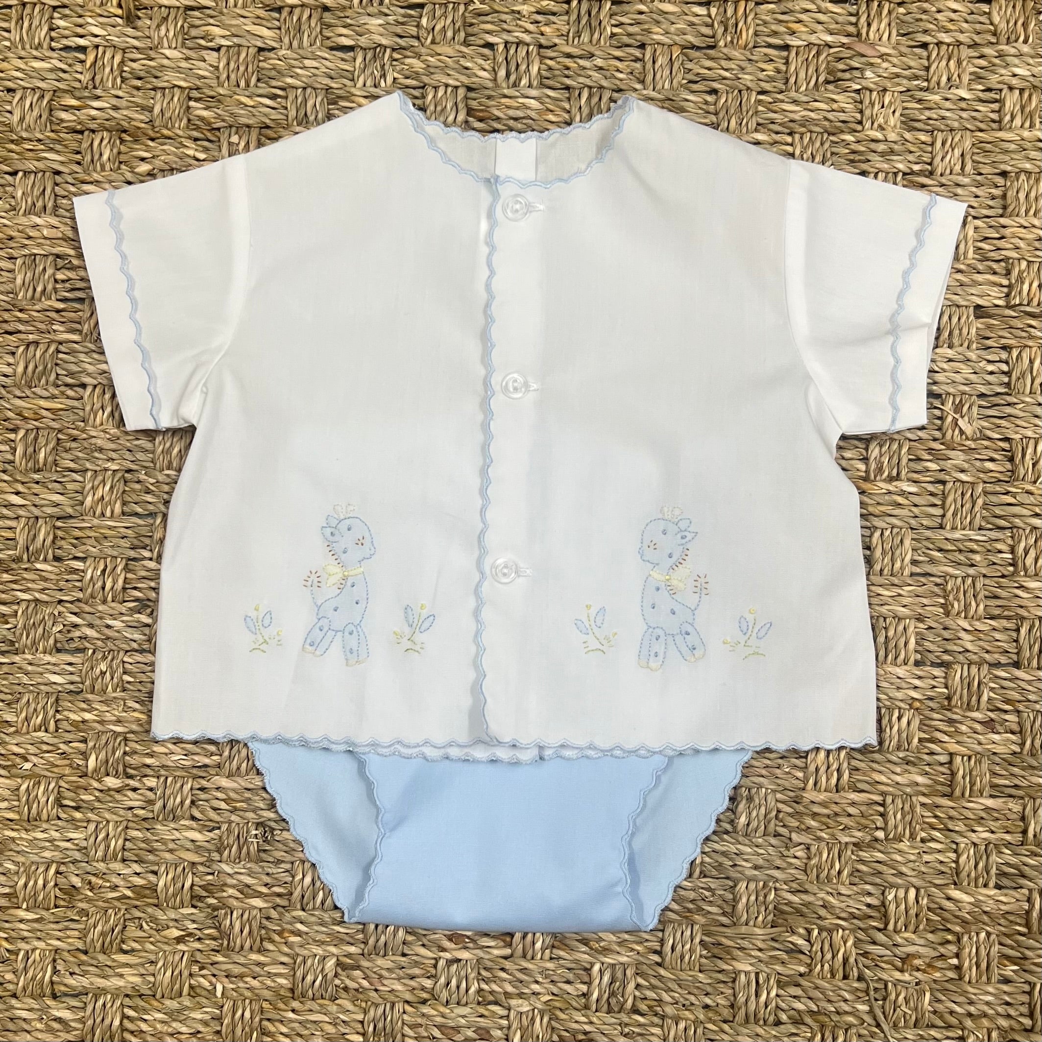 Auraluz White and Blue Diaper Cover Set with Embroidered Giraffe