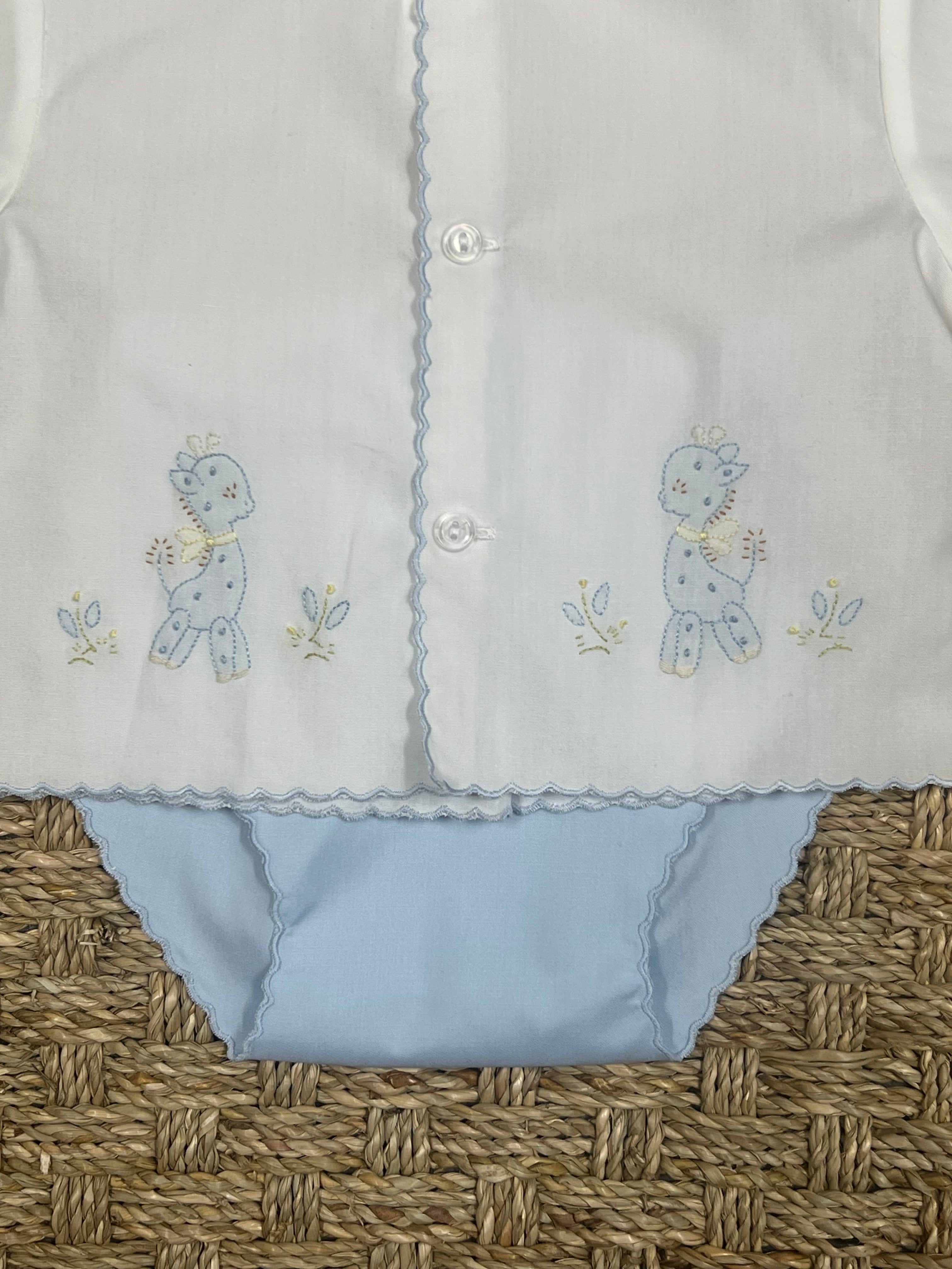 Auraluz Embroidered Day Gown, White with Blue Giraffe
