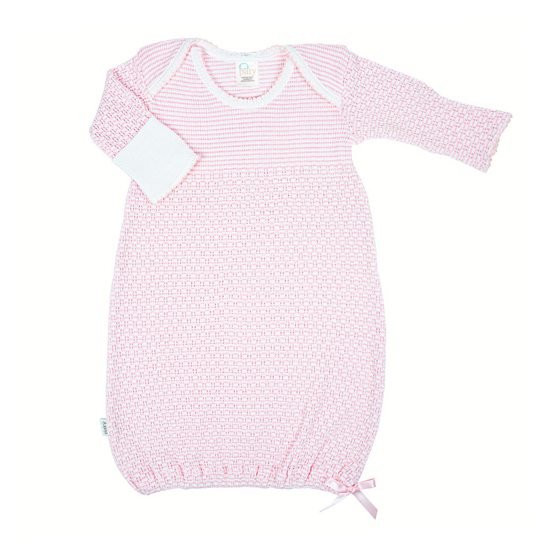 Paty Flutter Sleeve Diaper Set, White with Pink Trim