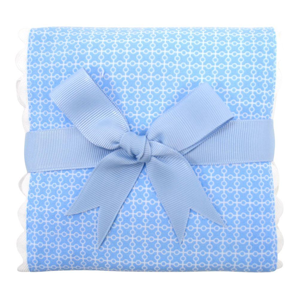 The burp cloths are one of our most practical products! Made from super absorbent, traditional cloth diapers, these burp cloths feature fancy rick rack, ribbon or pom pom trim along fabric panels and come tied with grosgrain ribbon. The burps are an easy and useful gift to bring to new parents at the hospital, with a meal or on their own!