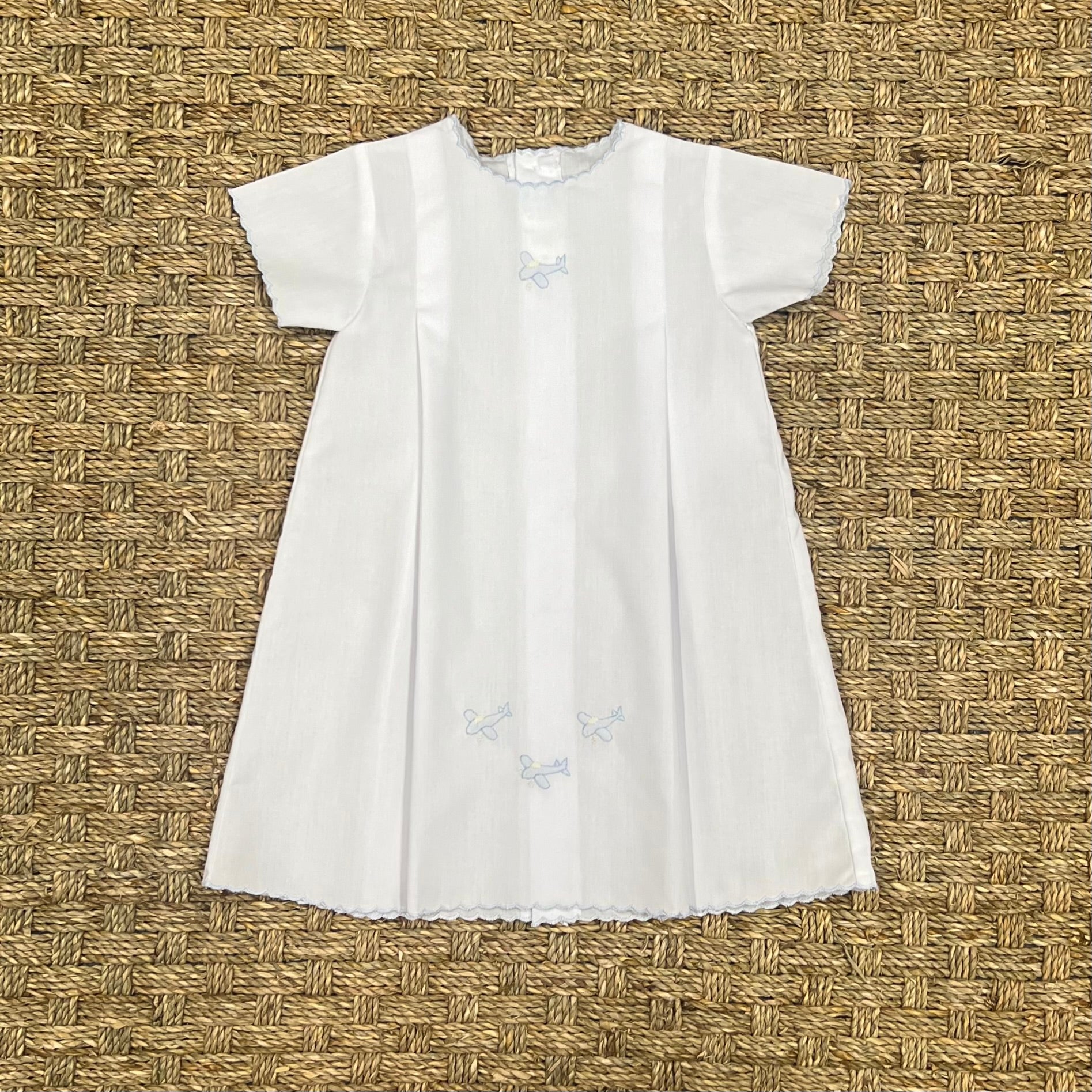 Auraluz White Scalloped Daygown with Blue Plane Embroidery