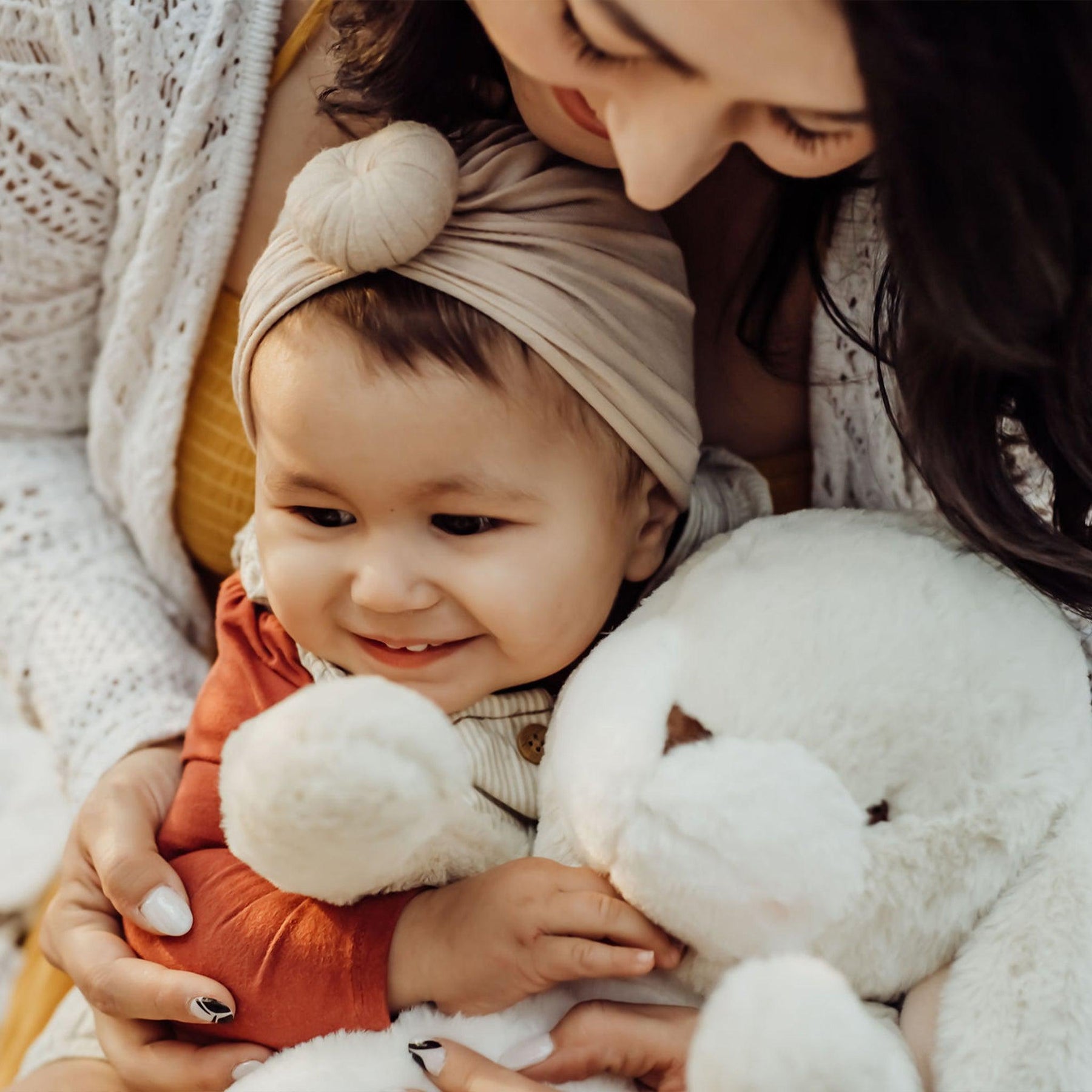 Meet Big Nibble Bunny! Huggable, luggable and simply adorable. Nibble’s long lop ears are buttery soft and perfect for soothing away worries. Dreamy Sugar Cookie fur, warm white tummy, tail, and muzzle.