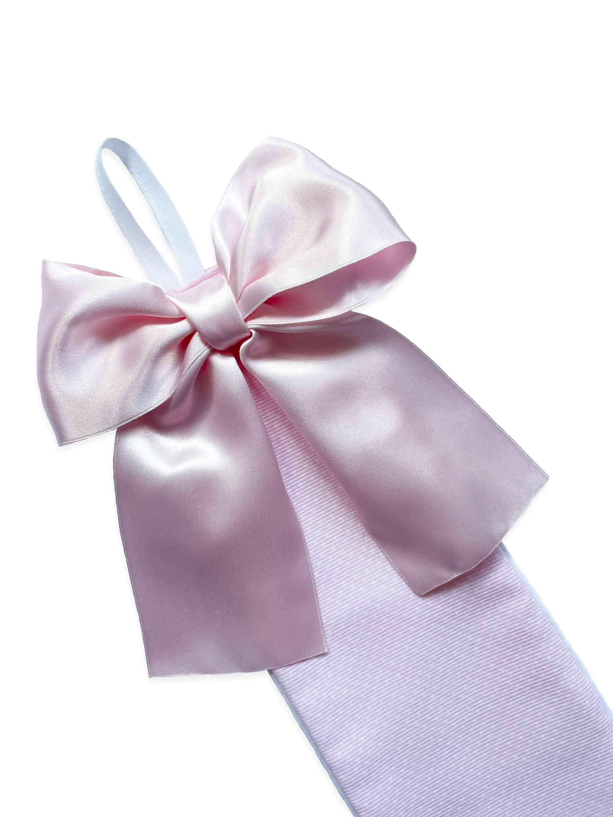 This new bow holder is made with a pique fabric (65%PES,35%CO)  The large satin ribbon bow handsewed gives a good finished look.