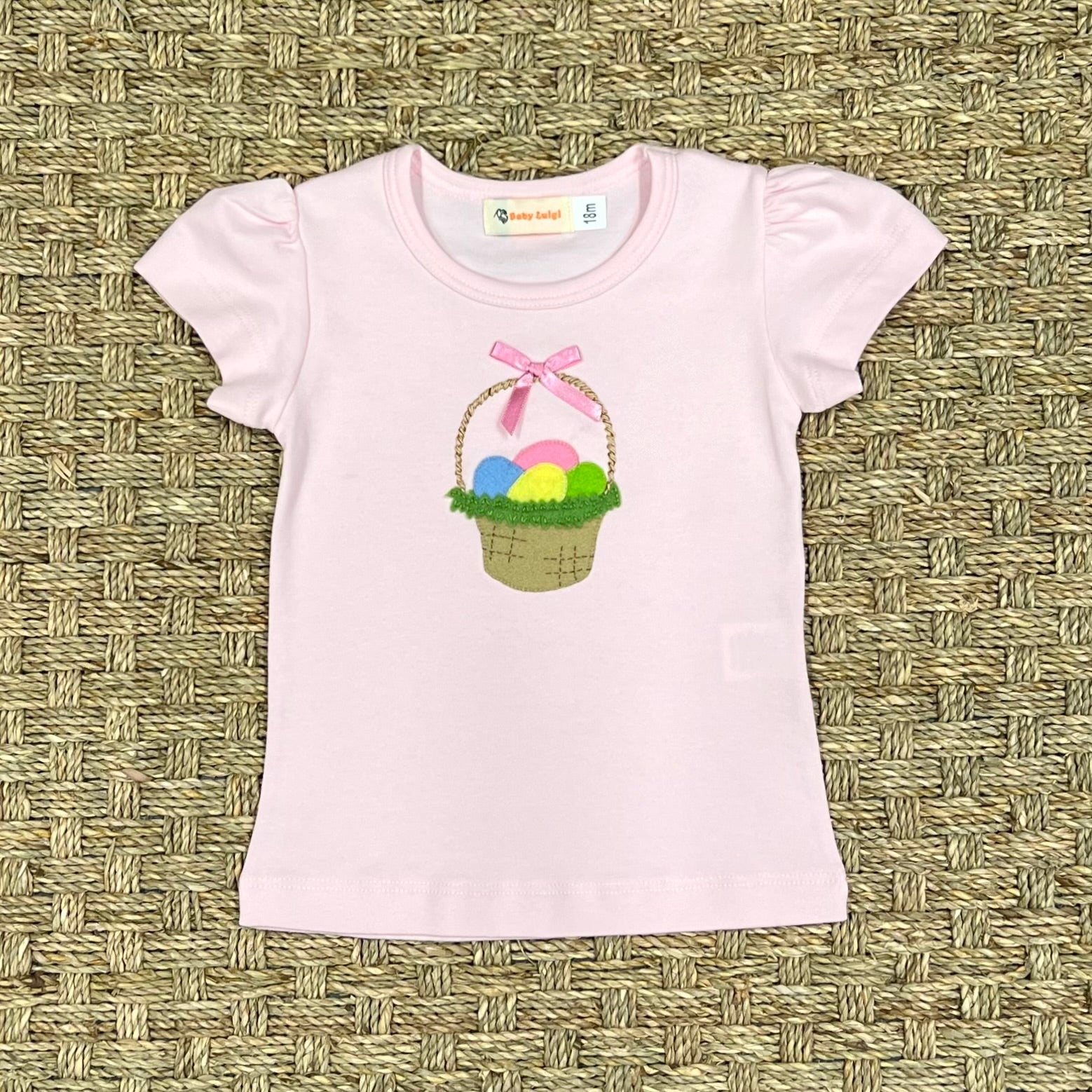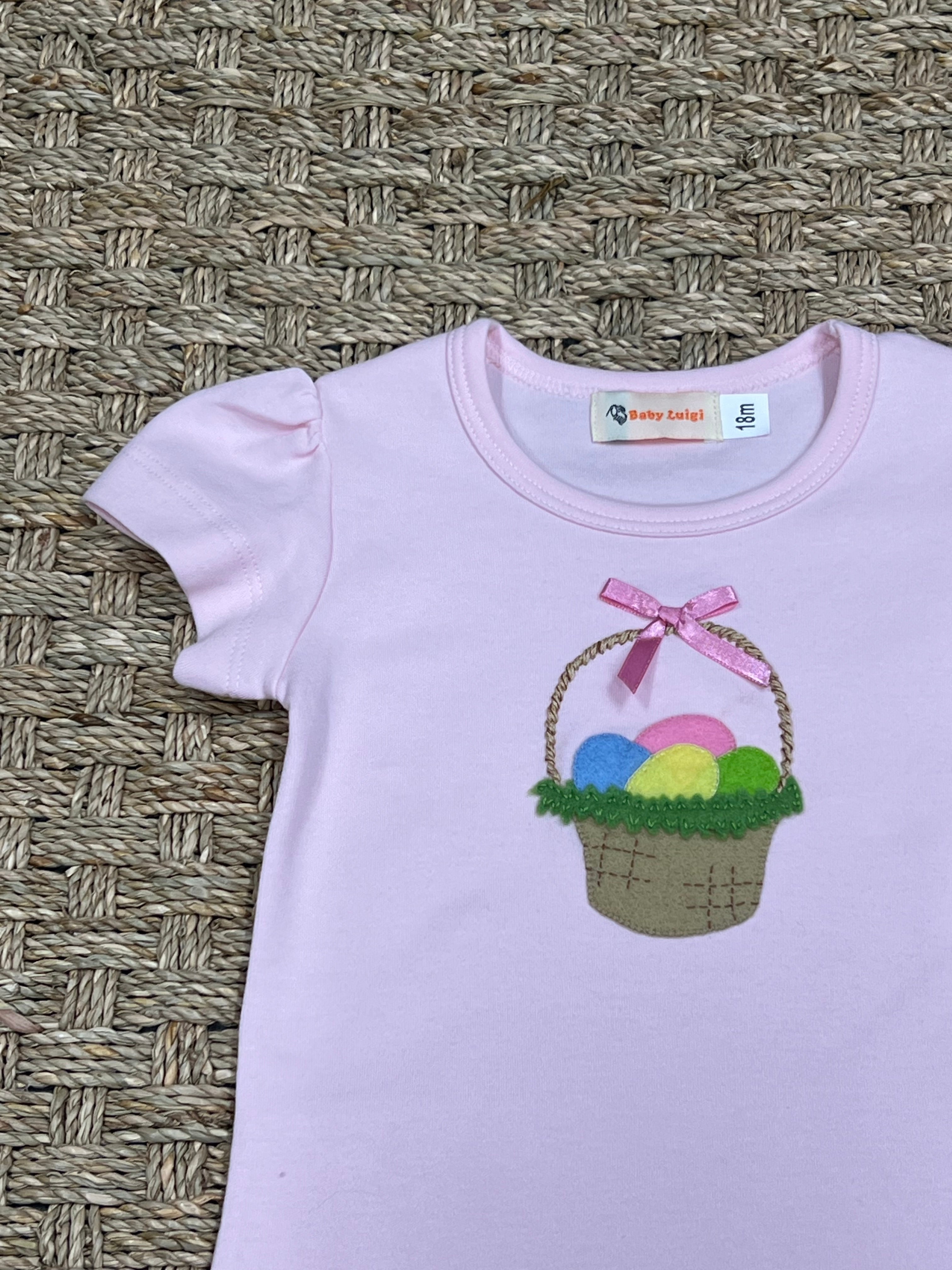 Luigi Gathered Tee, Easter Basket & Eggs on New Light Pink