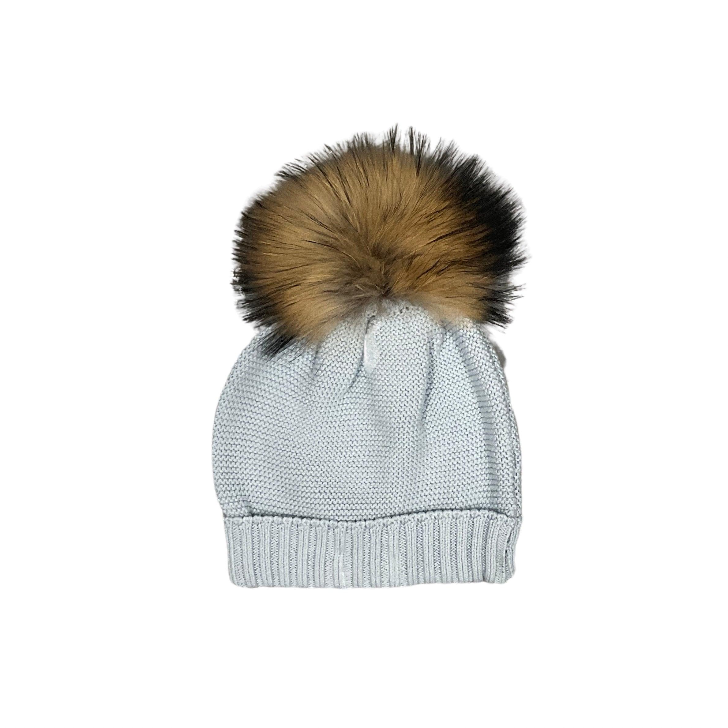 Mi Lucero Slouchy Hat, Light Blue with Brown Pom - shopnurseryrhymes